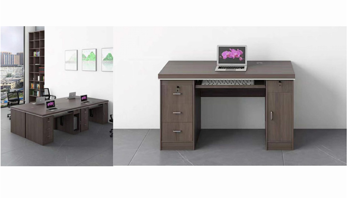 三聚氰胺饰面办公桌(1400*700*760固定三抽柜和主机箱)